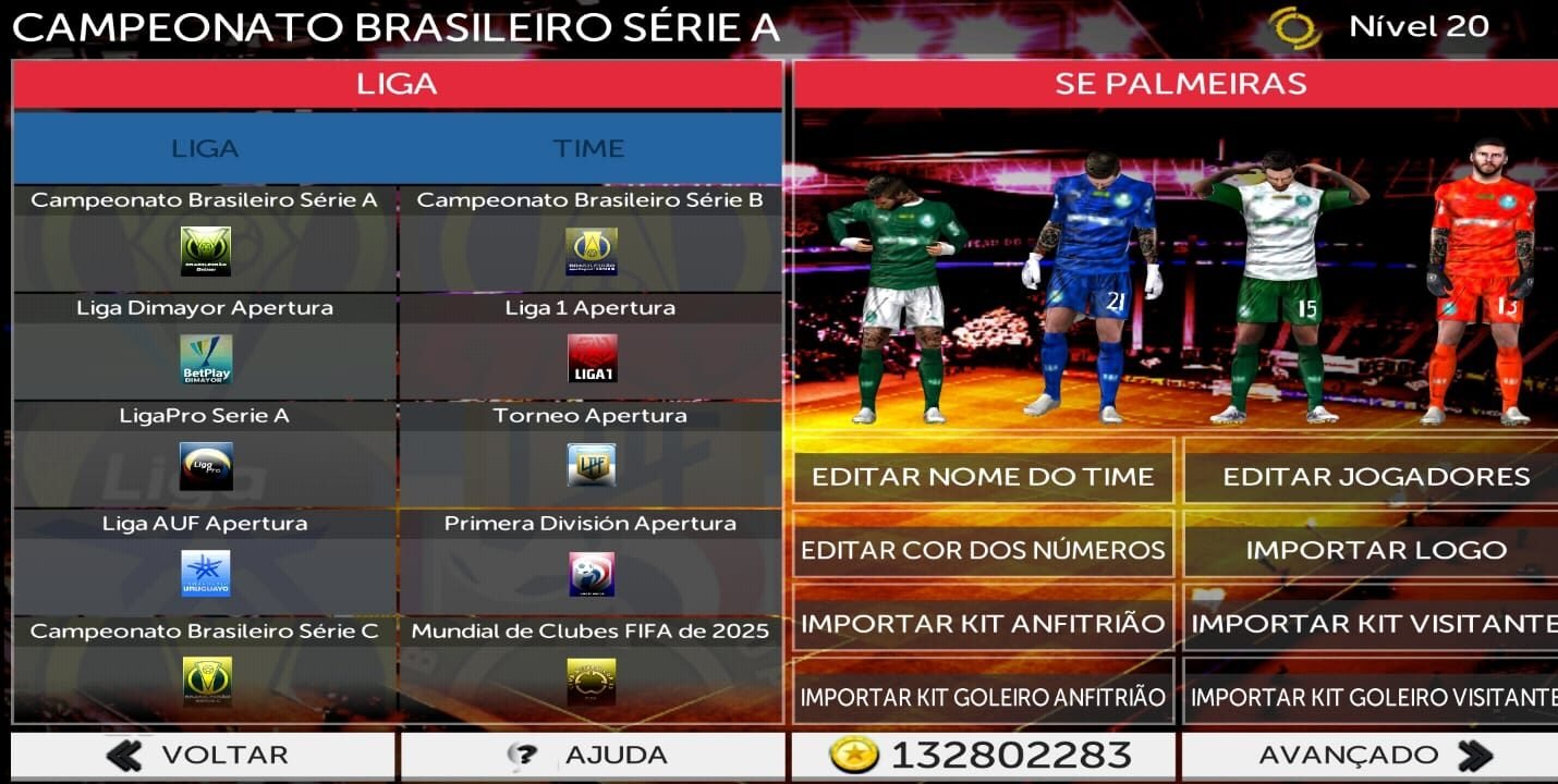 são muitos campeonatos disponíveis são eles: premier League, fa cup, liga francesa, copa da França, liga italiana, copa da Itália, la liga Santander, copa del rey, Bundesliga, liga holandesa, brasileirão, libertadores, Champions League, copa sul-americana, UEFA Europa League, Eurocopa, copa américa, copa do brasil e copa do mundo. poucos jogos de futebol mobile oferece essa quantidade de ligas e copas realmente o FTS é diferente.